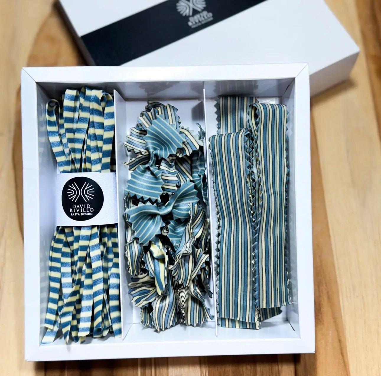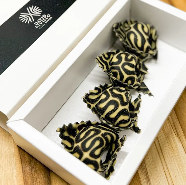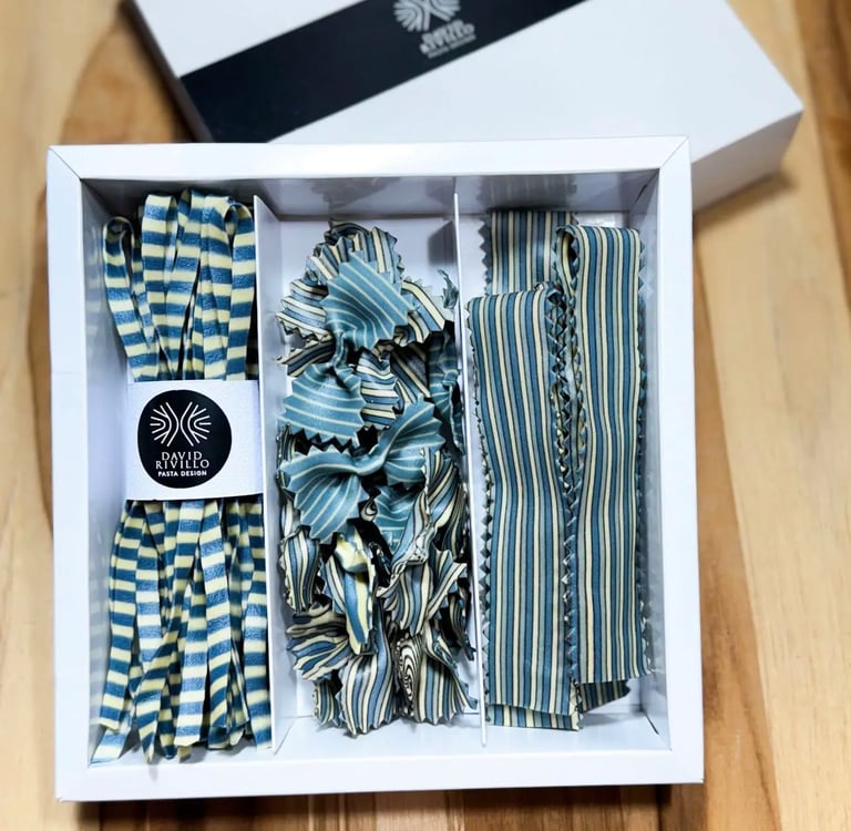 I make pasta boxes, dry and fresh, made to be given as a gift or enjoyed yourself. Each one is produced in small batches, with high-quality flours, fresh eggs, and natural colors drawn from spices, vegetables, algae, cocoa, and other natural sources. The focus is always the same: visual impact, flavor, texture, and how the pasta behaves once it reaches the kitchen.