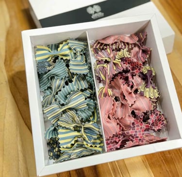 We offer a wide variety of pasta boxes, farfalle, long pasta, and mixed shapes and designs. Available in different sizes. Every box is crafted with care and made to stand out, from the plate to the table.